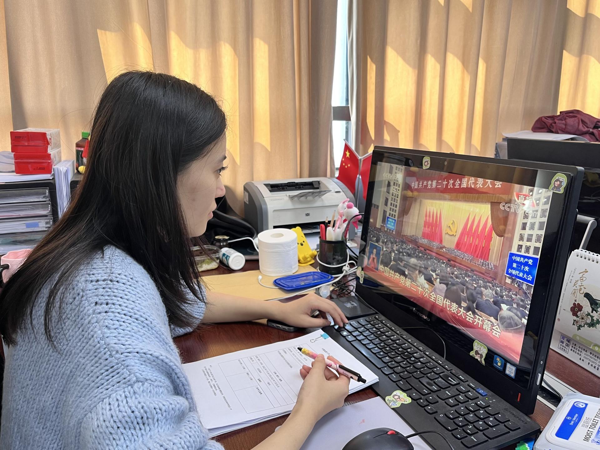 党委积极组织学院师生通过线上线下相结合、集中组织和自行观看相结合等方式,收看中国共产党第二十次全国代表大会开幕会盛况直播。