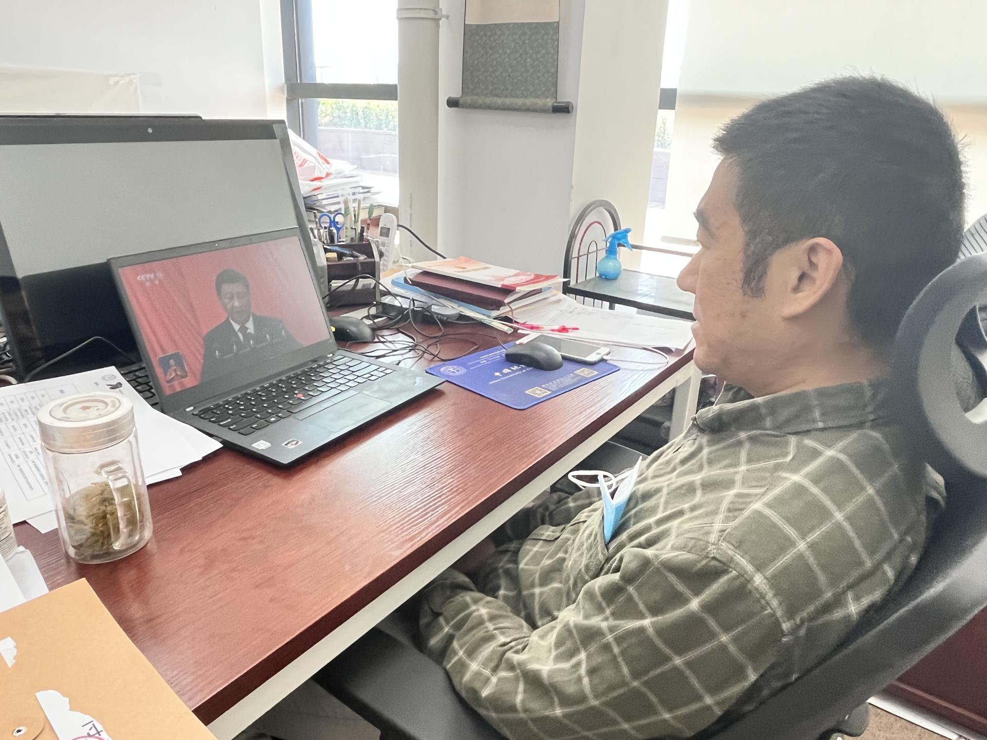 学院教师通过线上观看直播
